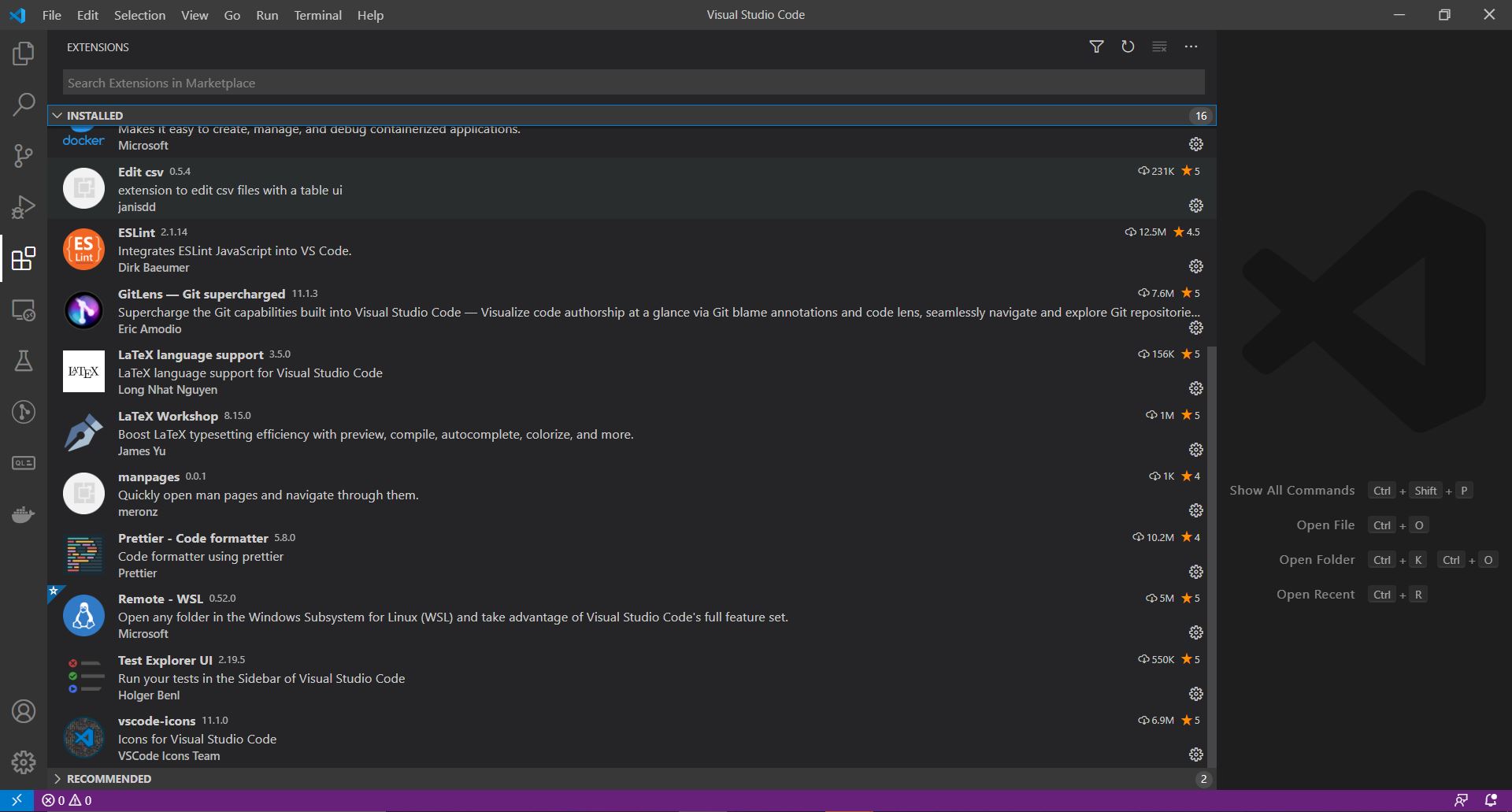 VSCode comes with a rich set of extensions to aid in software development. Below is a list of extensions that you may find useful.